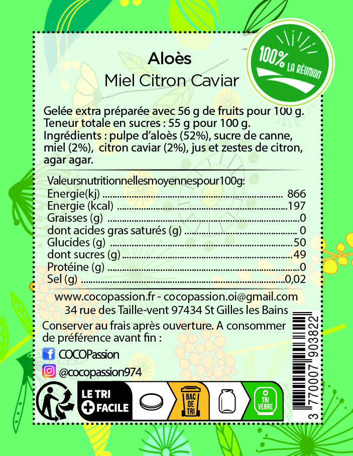 Le conseil culinaire de Coco : La spécialité artisanale Aloes Miel et Citron Caviar se déguste tout simplement sur des toasts, et peut accompagner des compositions de salades de légumes ou de fruits frais du fait de sa texture agréable et peu sucrée.