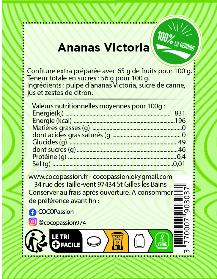 Le conseil culinaire de Coco : La spécialité artisanale Ananas Victoria se déguste tout simplement sur des tartines, crêpes, pancakes… ou avec du fromage blanc. Elle peut également entrer dans la composition de plats sucrés salés, en accompagnement de viandes ou plats végétariens.